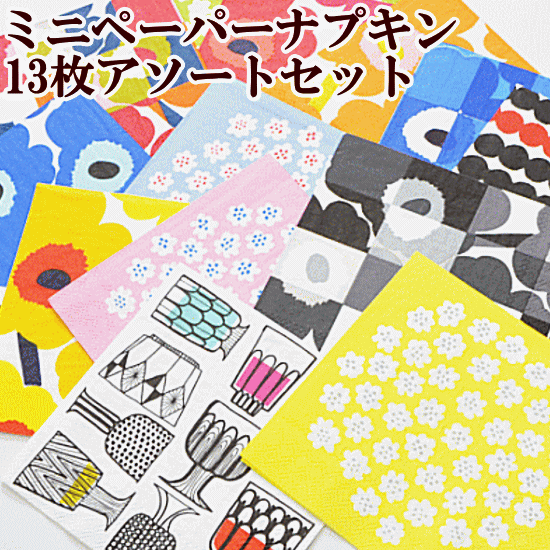 マリメッコ ミニペーパーナプキン アソート 13枚セット デコパージュに 北欧 《 ペーパー ナプキン 紙ナプキン ペーパーナフキン デコパージュ クラフト 》