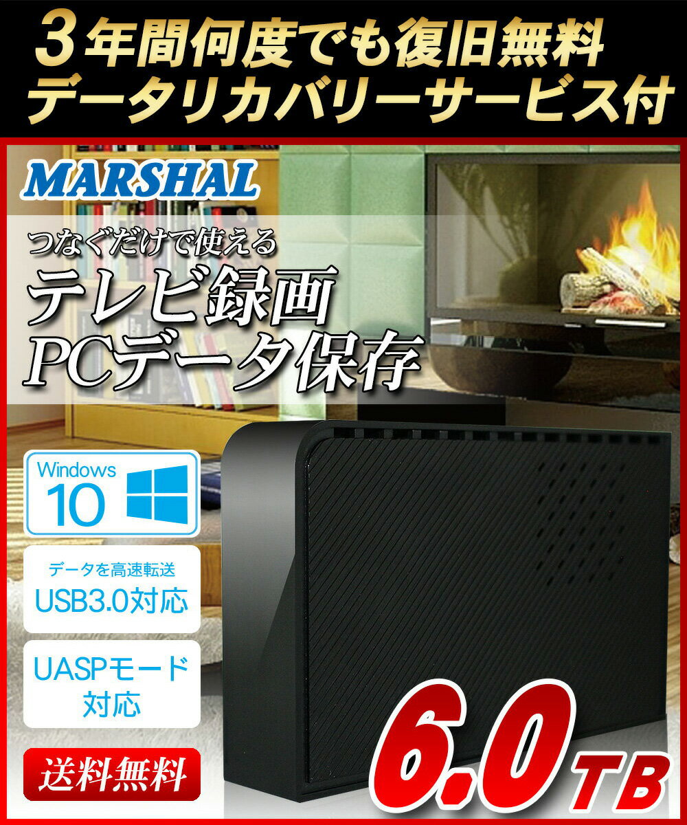 外付けハードディスク 6TB テレビ録画 対応 REGZA AQUOS BRAVIA VIERA 各社 USB3.0 データリカバリー付 外付けHDD MARSHAL SHELTER MAL36000EX3-BK
