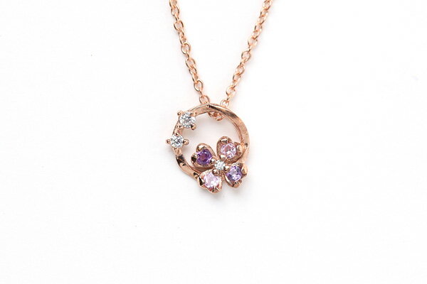 925SV ミルティユ クローバー ネックレス PG ピンクゴールド カラーストーン アメジスト 恋愛運 結婚運 絆 縁結び 出雲 癒し 天然石 パワーストーン