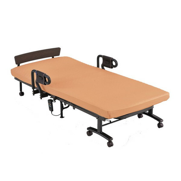 電動リクライニング折りたたみベッド/収納ベット シングル AX-BE735 2モーター仕様 オレンジ色カバー付き 安心、信頼の国産品(日本製)です。あす楽対応 《お盆期間中も発送が出来ます》