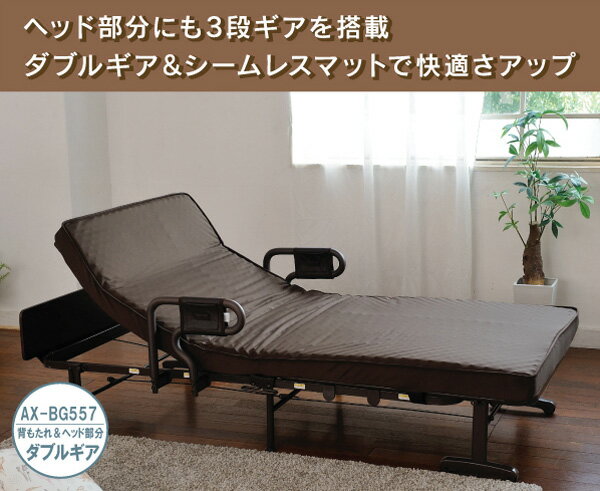 アテックス 収納式リクライニングベッド(ダブルギア) AX-BG557 洗えるブルー色マットレスカバー付き シングル プロファイルウレタンを使用した多層構造のマットレスにはつなぎ目が無く、とっても快適。