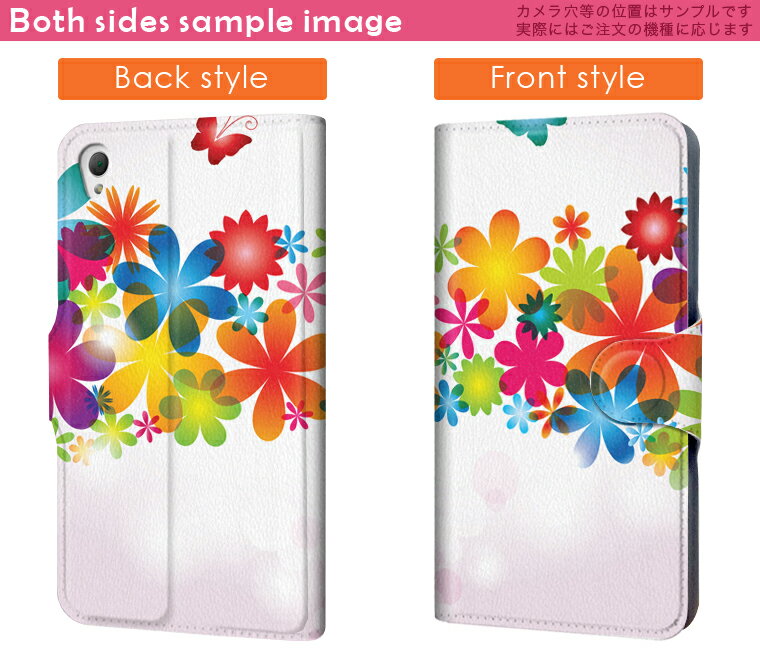 F-07E Disney Mobile ディズニー モバイル f07e docomo ドコモ スマホ カバー 手帳型 全機種対応 あり カバー レザー ケース 手帳タイプ フリップ ダイアリー 二つ折り 革 花 フラワー カラフル 蝶 フラワー 007299