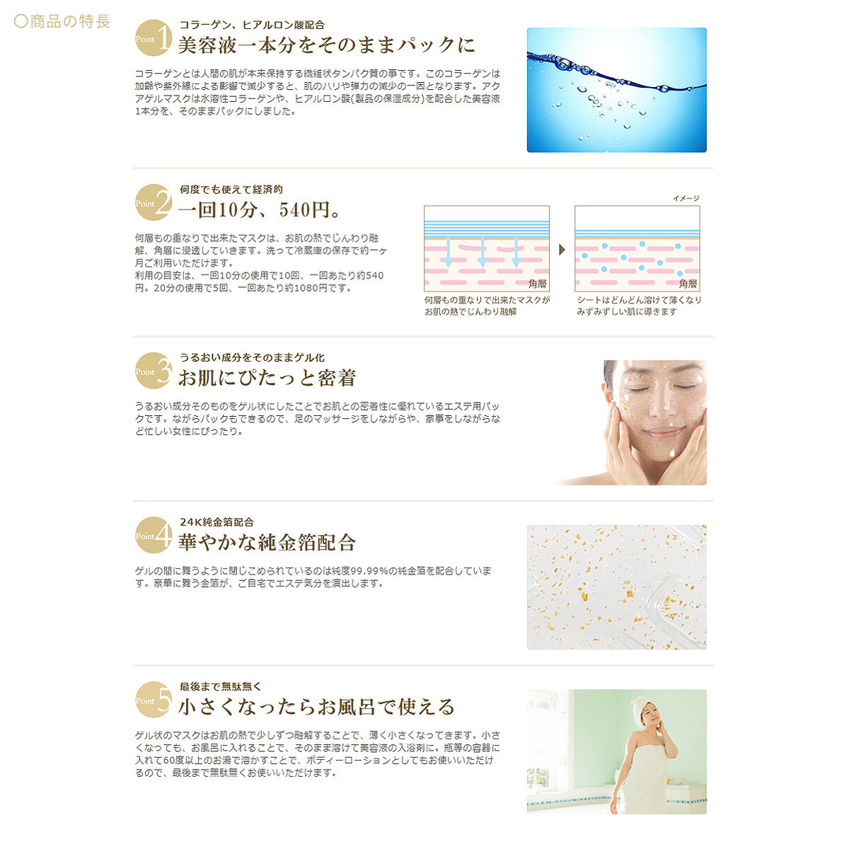 商品説明 【「金箔」の魅力を金沢から世界に向けて発信する「箔一」から生まれたうるおいの追求「金華ゴールド」】 ・美容保湿成分をたっぷり含んだぷるぷるゲルに整肌成分の金箔をちりばめたゲルマスクです。