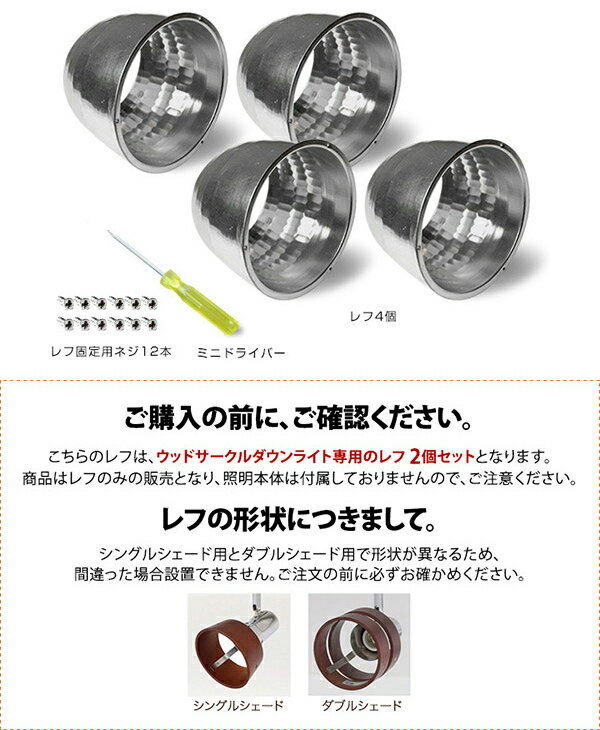 [1年保証] 【スポットライトと同時購入で送料無料】スポットライト用 レフ 4個セット 取付ネジ・工具付属 シーリングライト ウッドサークルダウンライト ウッドサークル 専用レフ[送料無料][あす楽]