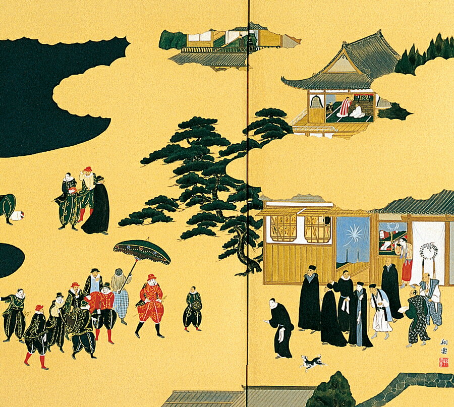やがて西洋からもたらされた財宝や新知識、珍しい風物は信長や秀吉などの支配者たちに好んで受容されるようになり、この様子が盛んに描かれました。